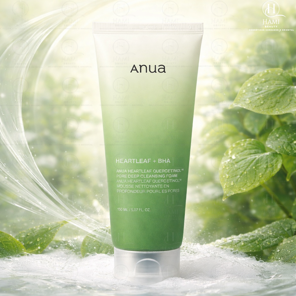 A Espuma de Limpeza Anua Heartleaf + BHA foi criada para limpar profundamente a pele sem ressecar, ajudando a remover impurezas, excesso de oleosidade e resíduos do dia a dia ✨