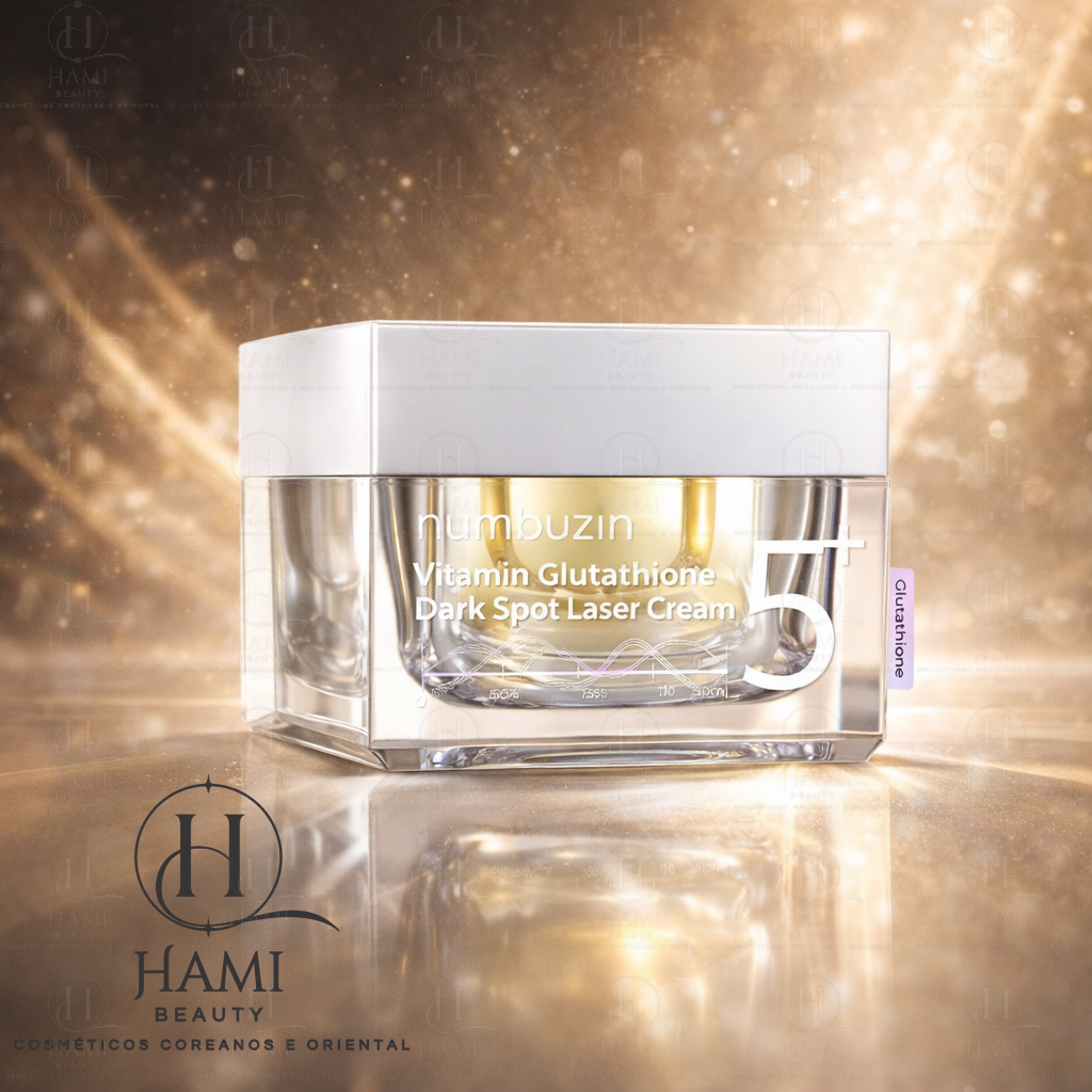 O No.5+ Vitamin Glutathione Dark Spot Laser Cream da numbuzin é um creme de tratamento desenvolvido para reduzir manchas, uniformizar o tom da pele e promover um efeito iluminado e saudável ✨.