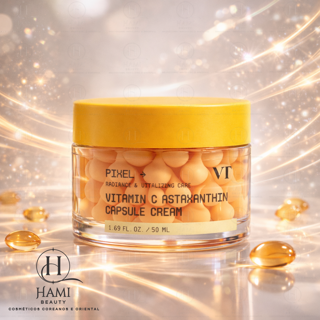 O VT Vitamin C Astaxanthin Capsule Cream é um creme facial avançado que combina tecnologia de cápsulas com poderosos antioxidantes para promover uma pele mais iluminada, uniforme e revitalizada.